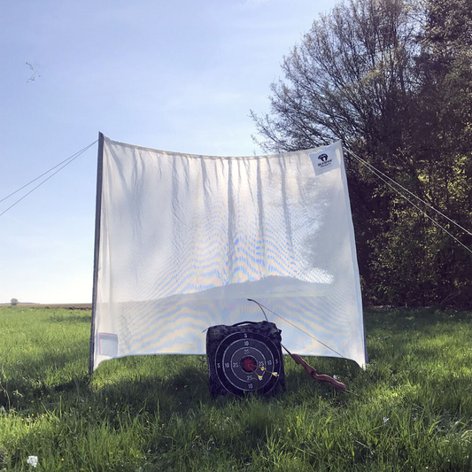 An example of using the nets in your own garden would be a 3 or 5-meter long net set up behind a target. This not only protects the surroundings from stray arrows but also prevents damage to the arrows by gently backstop them.